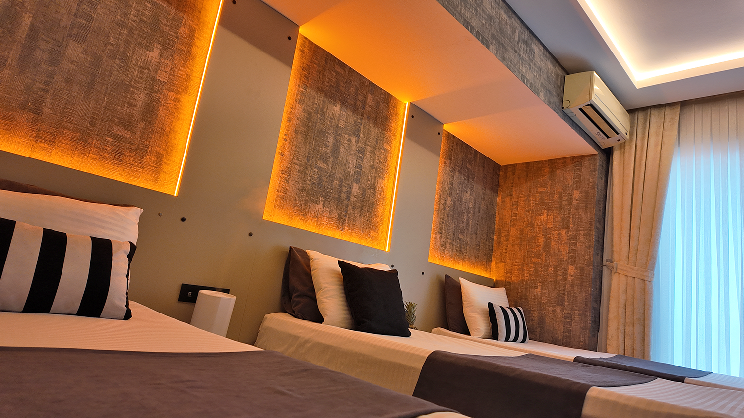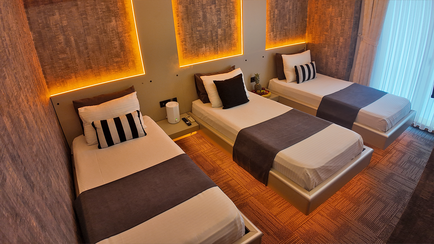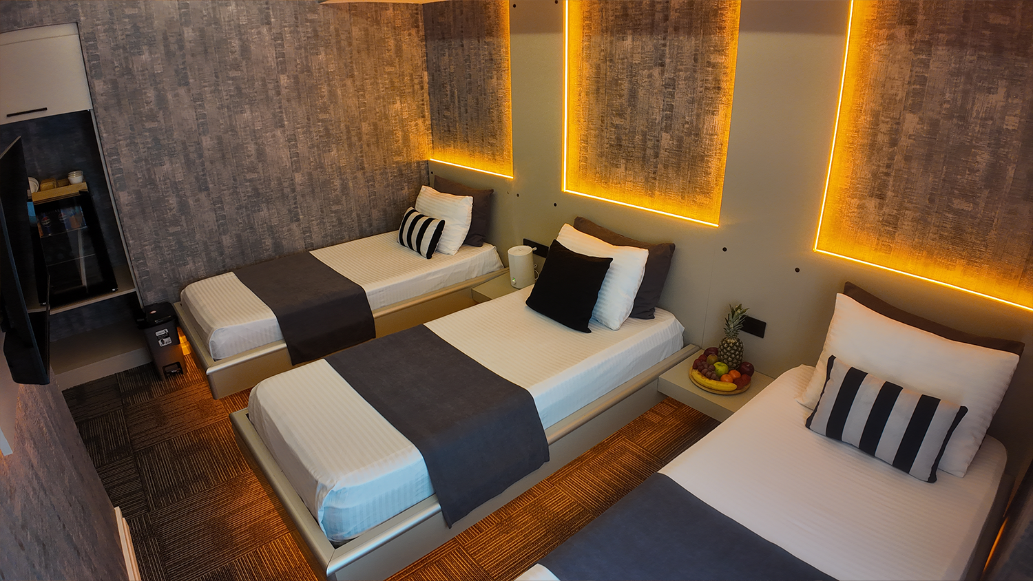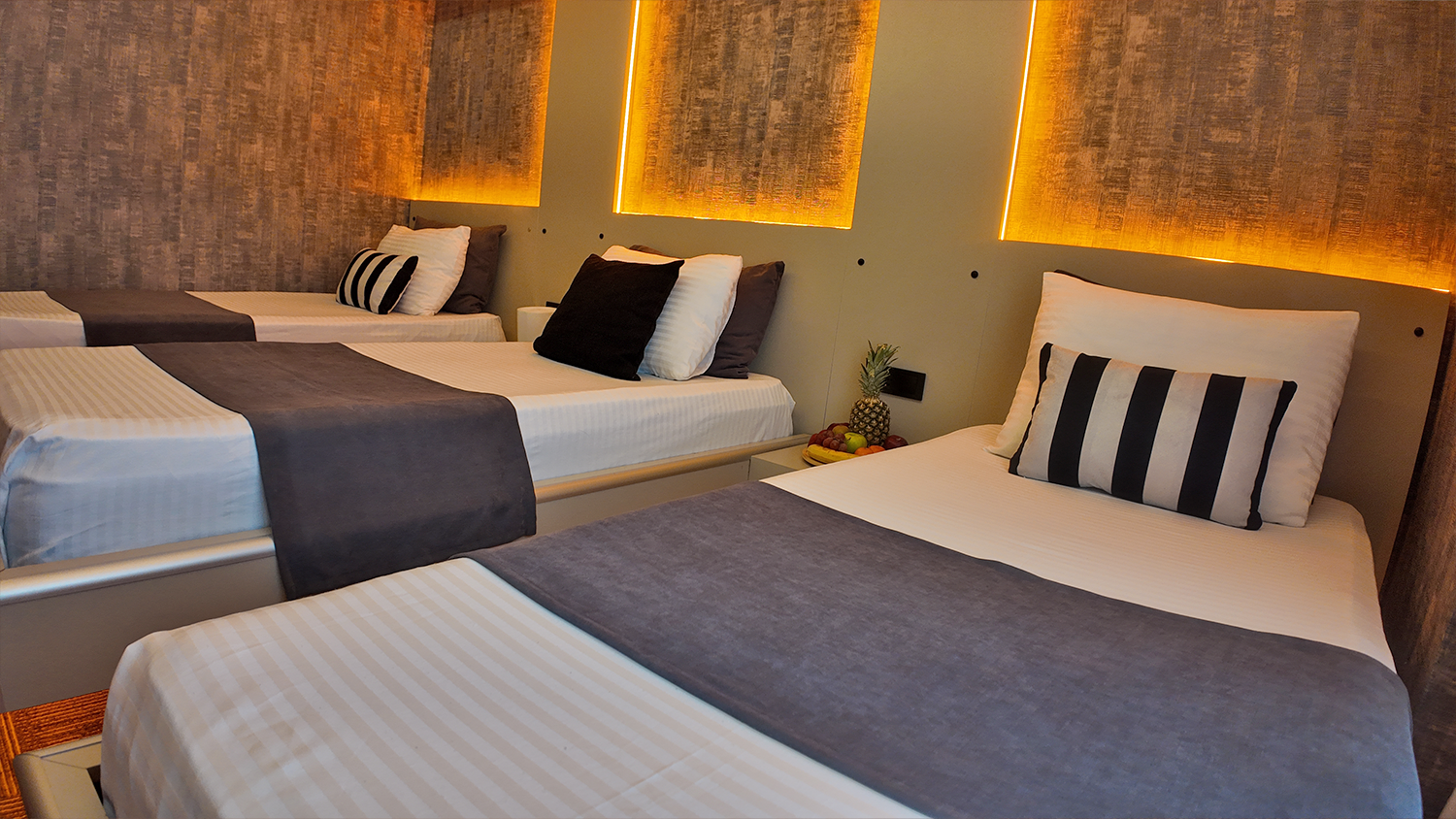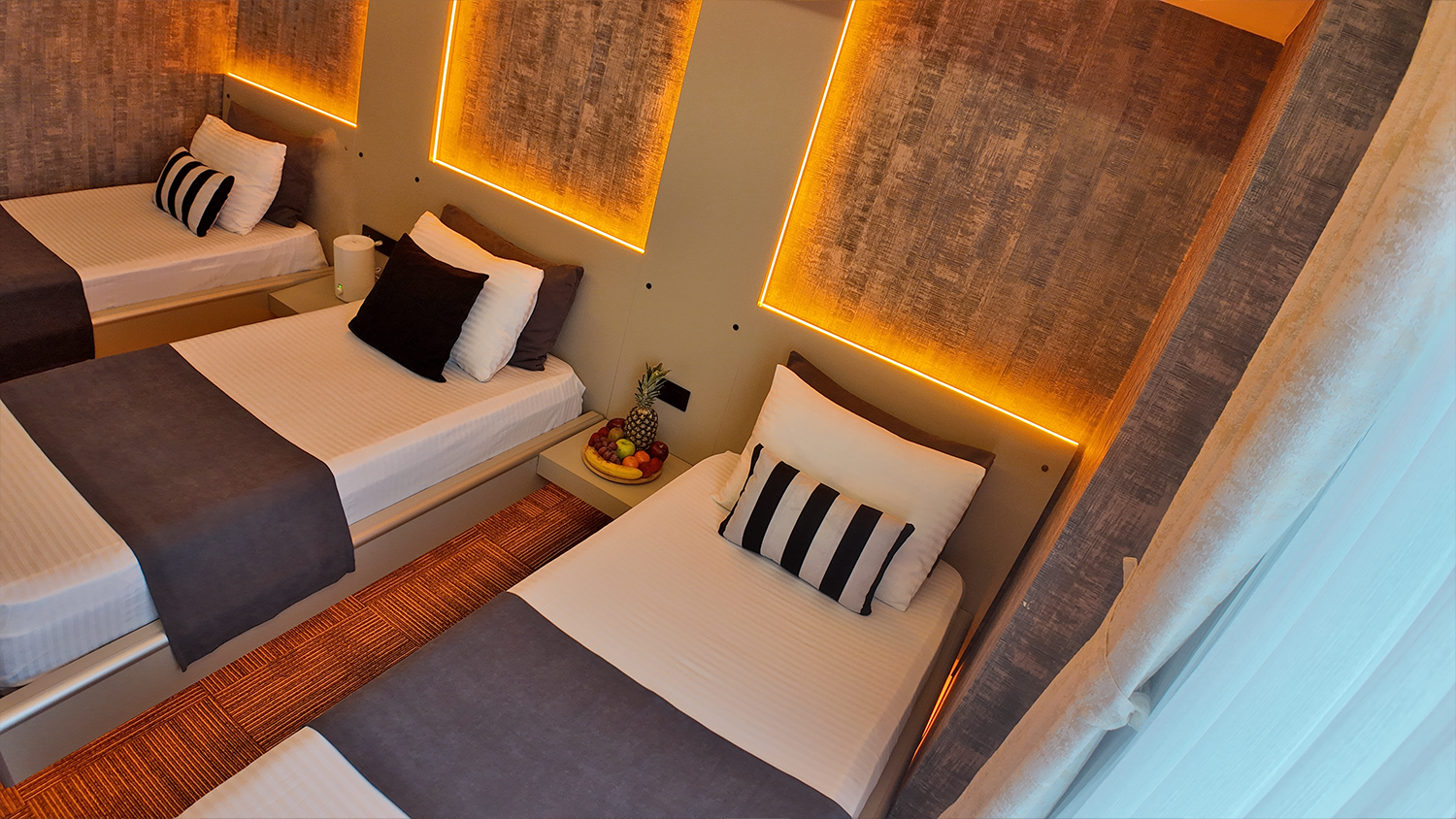 Üç kişilik konaklamalar için özel olarak tasarlanmış Triple odamız, herkesin kendi rahat alanına sahip olabileceği şekilde birbirinden mesafeli yataklarla donatılmıştır. Gruplar veya küçük ailelerin beklentilerine yönelik fonksiyonel, rahat ve ferah bir seçenektir.
