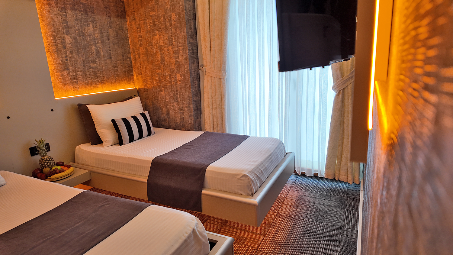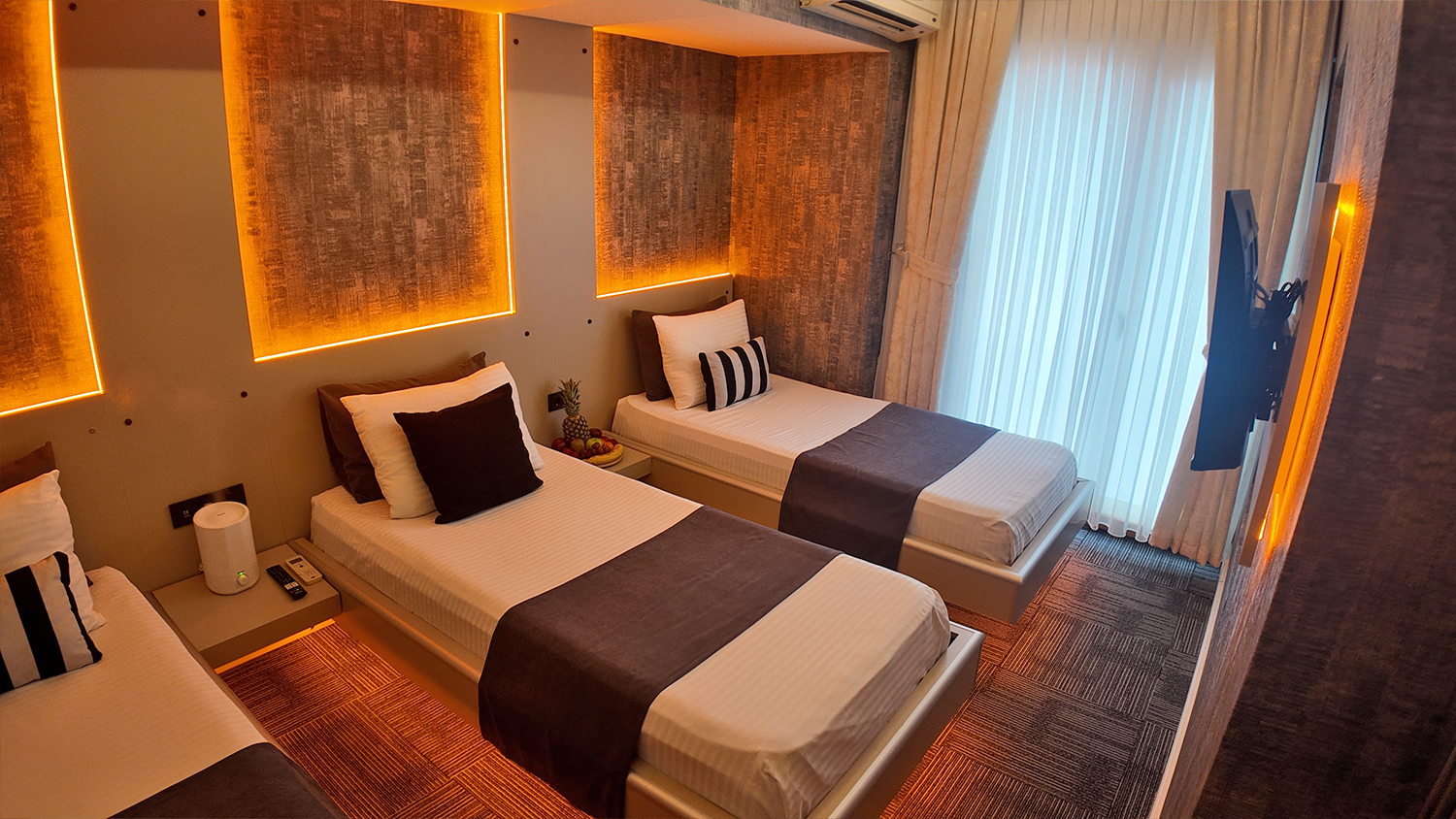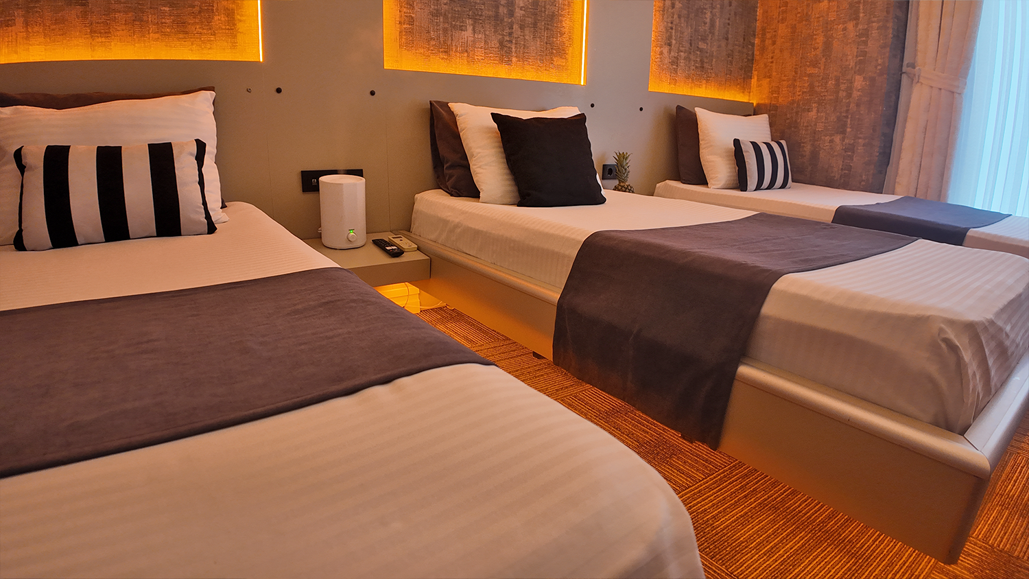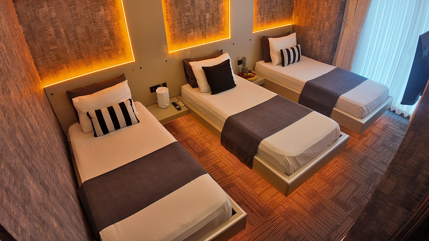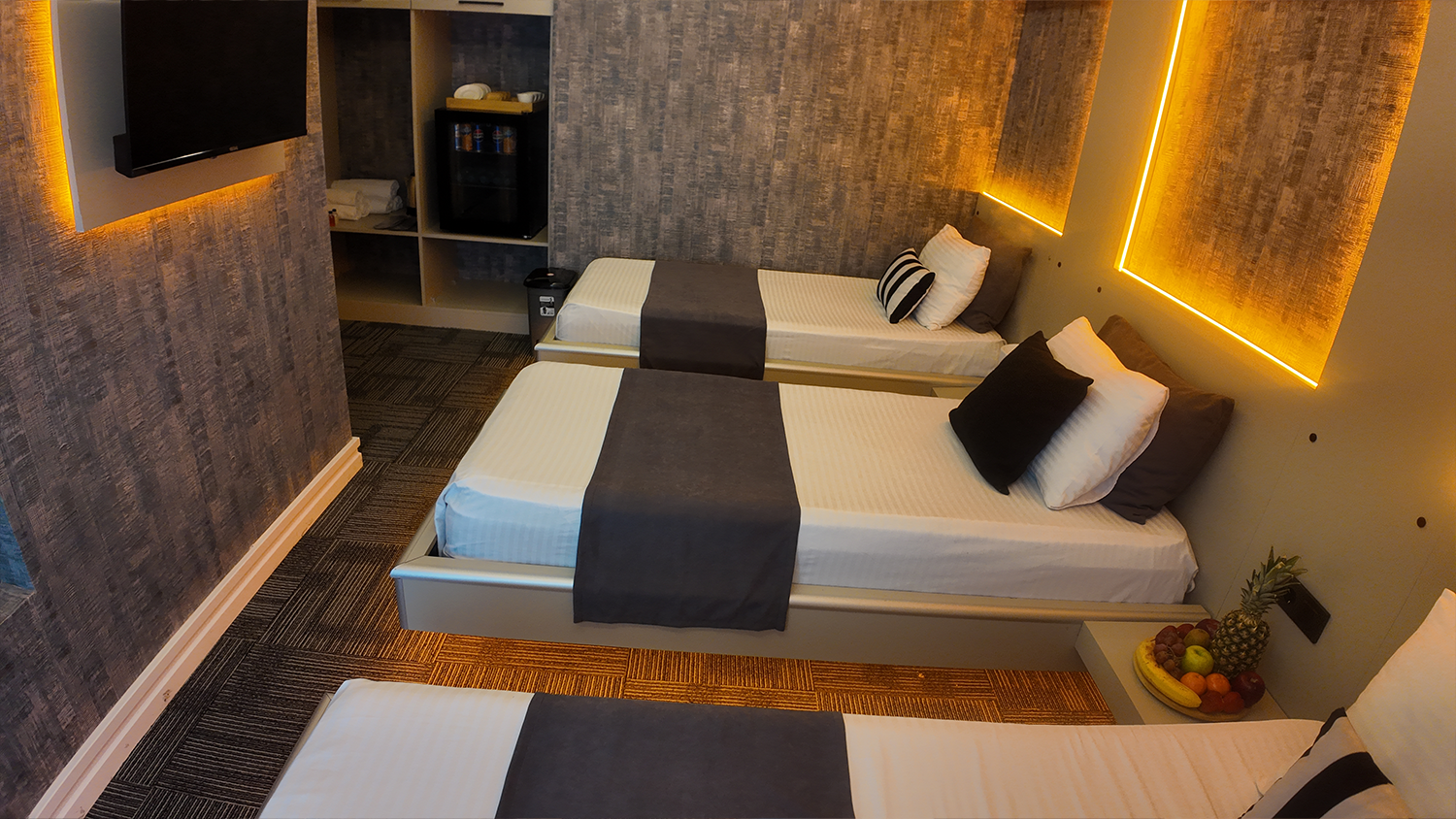 Üç kişilik konaklamalar için özel olarak tasarlanmış Triple odamız, herkesin kendi rahat alanına sahip olabileceği şekilde birbirinden mesafeli yataklarla donatılmıştır. Gruplar veya küçük ailelerin beklentilerine yönelik fonksiyonel, rahat ve ferah bir seçenektir.